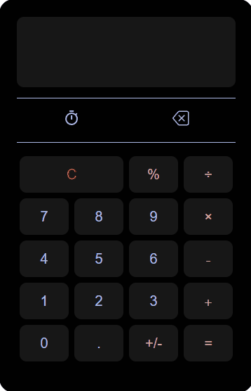 2. 기능 구현용 함수 선언부const inputValChecker = (val: number | string, inputVal: string) => { if (val.toString().includes('.') && inputVal === '.') return; if (!inputNumber && inputVal === '0') return false; if (val.toString().length > 14) return false; return true; }; const handleInputVal = (e: React.MouseEvent<HTMLElement>) => { const val = e.currentTarget.innerText; if (inputValChecker(inputNumber, val)) { setInputNumber(inputNumber + val); } if (middleNumber && totalNumber) { setPreviousNumber(totalNumber); setMiddleNumber(''); setTotalNumber(''); } setIsTotal(false); }; const generatedCalculation = ( oper: string, prevNum: string | number | undefined, inNum: string ) => { const prevNumber = prevNum ? prevNum : 0; const inNumber = inNum ? inNum : 0; const addition = +prevNumber + +inNumber; const subtraction = +prevNumber - +inNumber; let multiplication; let division; let calculated = 0; if ( (operation !== '×' && oper === '×') || (operation !== '÷' && oper === '÷') ) { multiplication = +prevNumber * 1; division = +prevNumber / 1; } else { multiplication = +prevNumber * +inNumber; division = +prevNumber / +inNumber; } switch (oper) { case '+': calculated = addition; break; case '-': calculated = subtraction; break; case '×': calculated = multiplication; break; case '÷': calculated = division; break; default: return; } handleSetCalHistories(oper, calculated); return calculated; }; const handleSetCalHistories = (_oper: string, _calculated: number) => { if (calHistories.length < 2) { setCalHistories((prevHis) => [ ...prevHis, { id: prevHis[prevHis.length - 1].id + 1, prevNum: previousNumber, operation: _oper, midNum: inputNumber, totalNum: _calculated, }, ]); } else { const arr = calHistories; setCalHistories(arr.slice(1, arr.length)); setCalHistories((prevHis) => [ ...prevHis, { id: prevHis[prevHis.length - 1].id + 1, prevNum: previousNumber, operation: _oper, midNum: inputNumber, totalNum: _calculated, }, ]); } }; const handleOperate = (e: React.MouseEvent<HTMLElement>) => { const oper = e.currentTarget.innerText; setOperation(oper); if (!previousNumber) { setPreviousNumber(inputNumber); } else if (previousNumber && !totalNumber) { setPreviousNumber( generatedCalculation(oper, previousNumber, inputNumber) ); } else if (middleNumber && totalNumber) { setPreviousNumber(totalNumber); } setMiddleNumber(''); setInputNumber(''); setTotalNumber(''); setIsTotal(false); setNotComplete(false); }; const handleEvaluate = () => { if (!inputNumber) { setNotComplete(true); return; } setPreviousNumber(previousNumber); setMiddleNumber(inputNumber); setInputNumber(''); setTotalNumber( generatedCalculation(operation, previousNumber, inputNumber) ); setOperation(operation); setIsTotal(true); setNotComplete(false); }; const handleDelete = () => { setInputNumber(inputNumber.toString().slice(0, -1)); }; const handleReset = () => { setPreviousNumber(''); setMiddleNumber(''); setInputNumber(''); setTotalNumber(''); setOperation(''); setIsTotal(false); setNotComplete(false); setCalHistories([ { id: 0, prevNum: '', operation: '', midNum: '', totalNum: 0, }, ]); }; const handleChangePercent = () => { if (inputNumber) { setInputNumber((+inputNumber * 0.01).toString()); } }; const handleChangeSign = () => { if (inputNumber) { if (+inputNumber > 0) { setInputNumber((+inputNumber * -1).toString()); } else { setInputNumber((+inputNumber * -1).toString()); } } }; const handleCalHistoryToggle = () => { setCalHistoryToggle(!calHistoryToggle); };