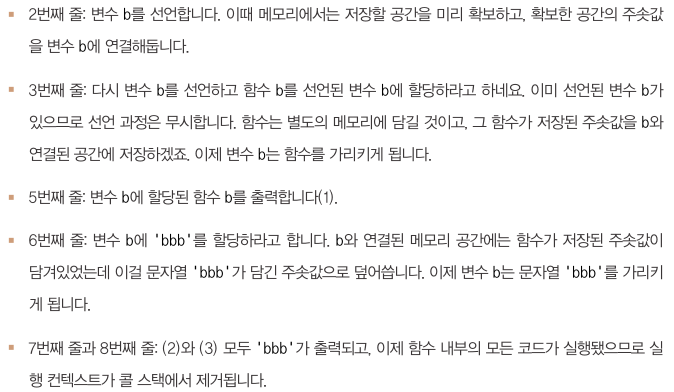 👉 실제 출력값: (1) // 함수 b, (2), (3) // 'bbb'