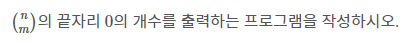 nCr = n!/(n-r)!r! 을 이용하면 된다. 하지만 단순 팩토리얼을 이용하여 풀면 n, m 이 20억이될 수 있기 때문에 시간초과, 또는 메모리 초과가 될 것이다. 끝자리가 0이라는 것은 2 와 5의 곱으로 이루어