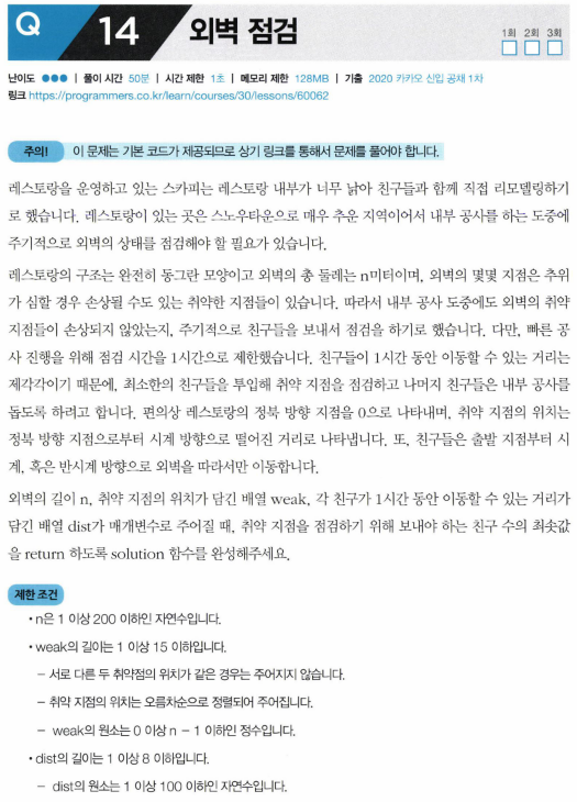 JavaScript 프로그래머스 외벽 점검 LEVEL3