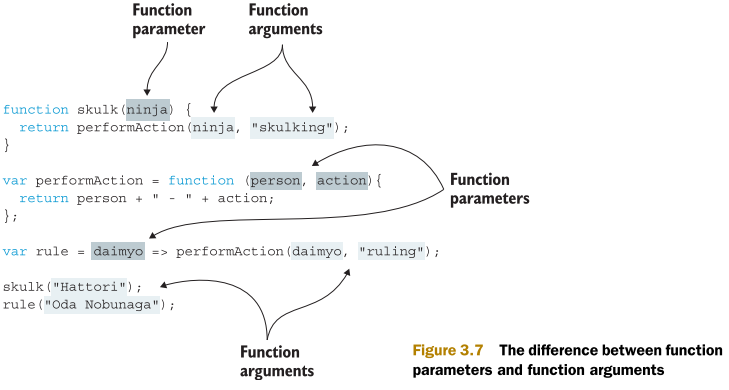 우리는 흔히 arguments와 parameters를 혼용한다. 이 둘은 거의 같지만 엄격히 따지면 다르다.