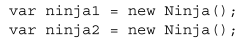 위 예제 코드에서 function을 단순히 function으로서 호출하면 결과값 '1'이 반환된다. 만약 new keyword를 통해 constructor로 호출한다면 새로운 ninja object가 생성되어 반환된다.