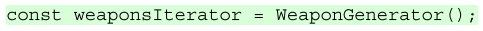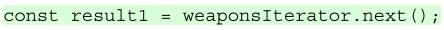 - while 반복문이 한 번 실행될 때마다 weaponsIterator의 next 메소드를 호출함으로써 제너레이터에서 생성된 값을 붙여넣고 item 변수에 해당 값을 저장