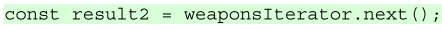 이후 weaponIterator의 next 메소드에 대한 또 다른 호출을 만들어 다른 값을 요청한다.