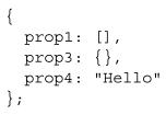 위 코드는 새로운 빈 객체를 생성하고 할당 문구(assignment statements)를 통해 프로퍼티를 입력한다.