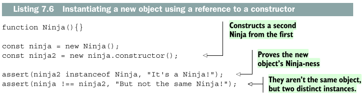이것은 단지 원래 생성자에 대한 참조이기 때문에 이 인스턴스를 활용하는 새로운 Ninja 객체를 인스턴스화할 수 있다.